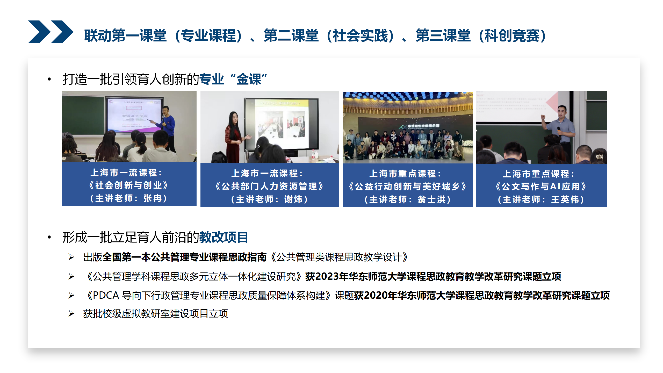 行政管理专业建设注重与数字技术革命、新文科的交叉融合,致力于数字智能时代的行政管理卓越人才综合素质培养。授课教师100%拥有博士学位,其中多人获得上海市“巾帼建功标兵”、上海市五四青年奖章、霍英东全国高等院校优秀青年教师等荣誉称号。