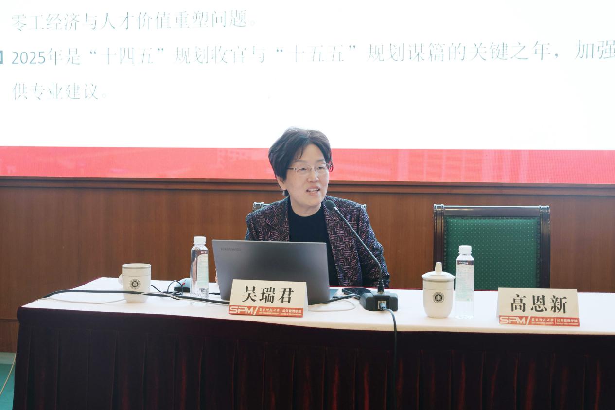 最后,高恩新做总结发言。他表示吴瑞君教授系统全面、点面结合传达了今年全国“两会”精神,对于加快推进公管学科转型发展具有重要的指导意义。此次辅导报告提纲挈领、内容丰富,切实提高了学院全体师生学习全国“两会”精神的思想认识。后续,学院党委将依托学院党支部等基层组织继续深化学习领会全国“两会”精神,精准把握国家有关各项部署要求,推动学院各项事业迈向高质量发展新征程。