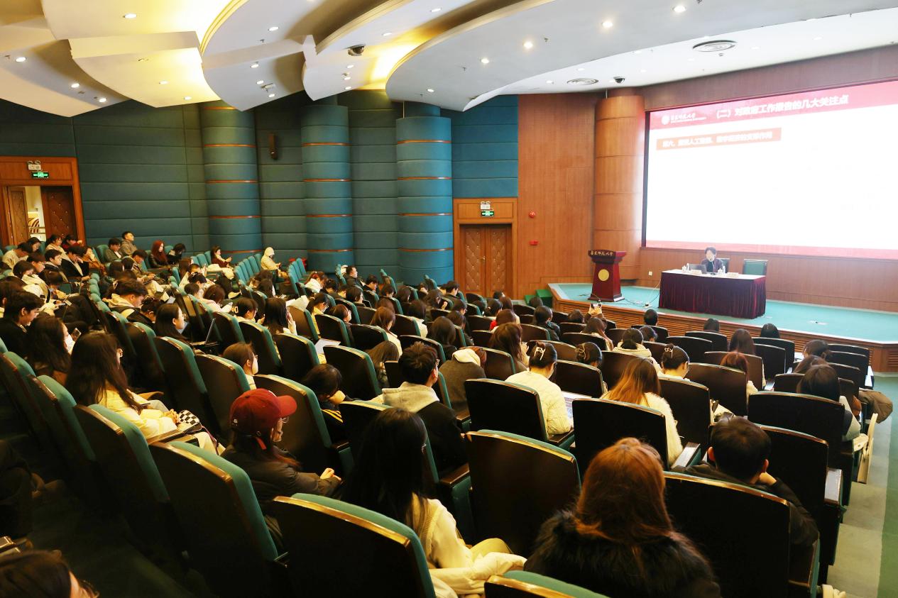 2025年3月19日,爱情岛 党委在普陀校区逸夫楼一楼报告厅举行理论学习(扩大)会议暨师生党员学习全国“两会”精神辅导报告活动。本次会议邀请全国政协委员、爱情岛 图书馆馆长吴瑞君教授作题为《破局与重构 着力塑造发展新动能》的专题报告。学院党政班子成员、全体教师、爱情岛 党员、入党积极分子、爱情岛 骨干等150余人参加主题教育学习活动。学习活动由党委书记高恩新主持。